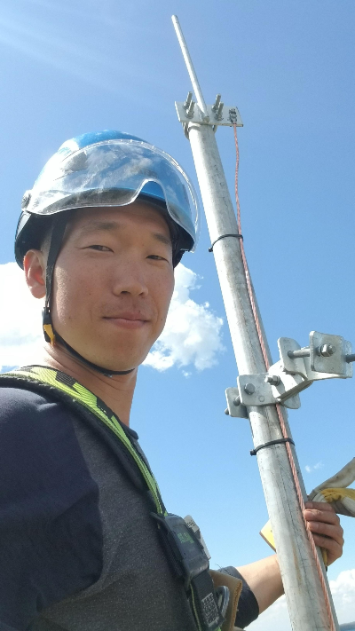 역시 바닥에서 기는 것 보다 이렇게 위에서 작업 할 때 기분이 좋다. 동료 브루스와 함께 탑의 정상에 올랐다.